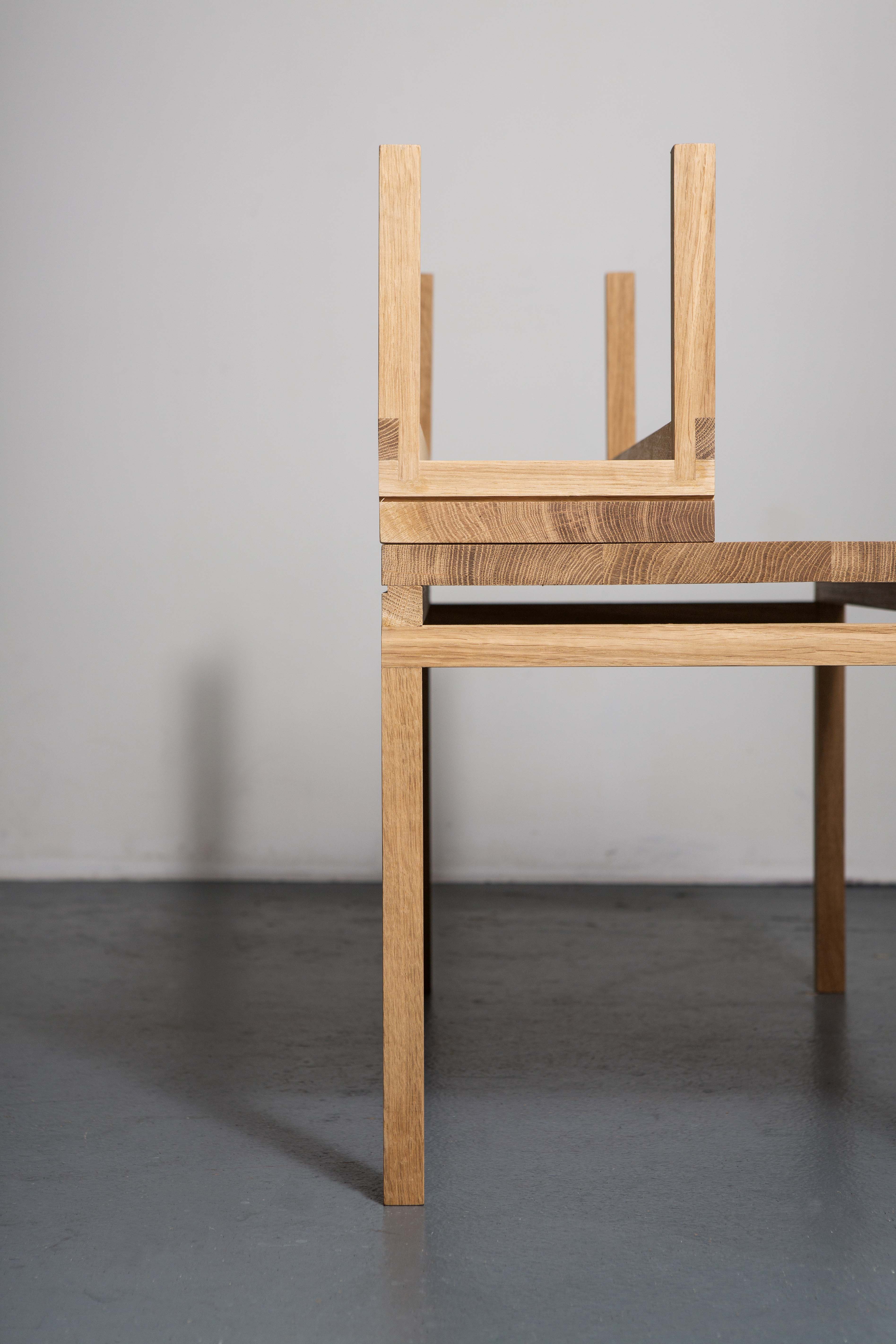 Die Wahl ist auf europäische Eiche gefallen. Die unaufdringlich homogene Erscheinung des Holzes kommt auch aus der Nichtvewertung des Splintholzes.